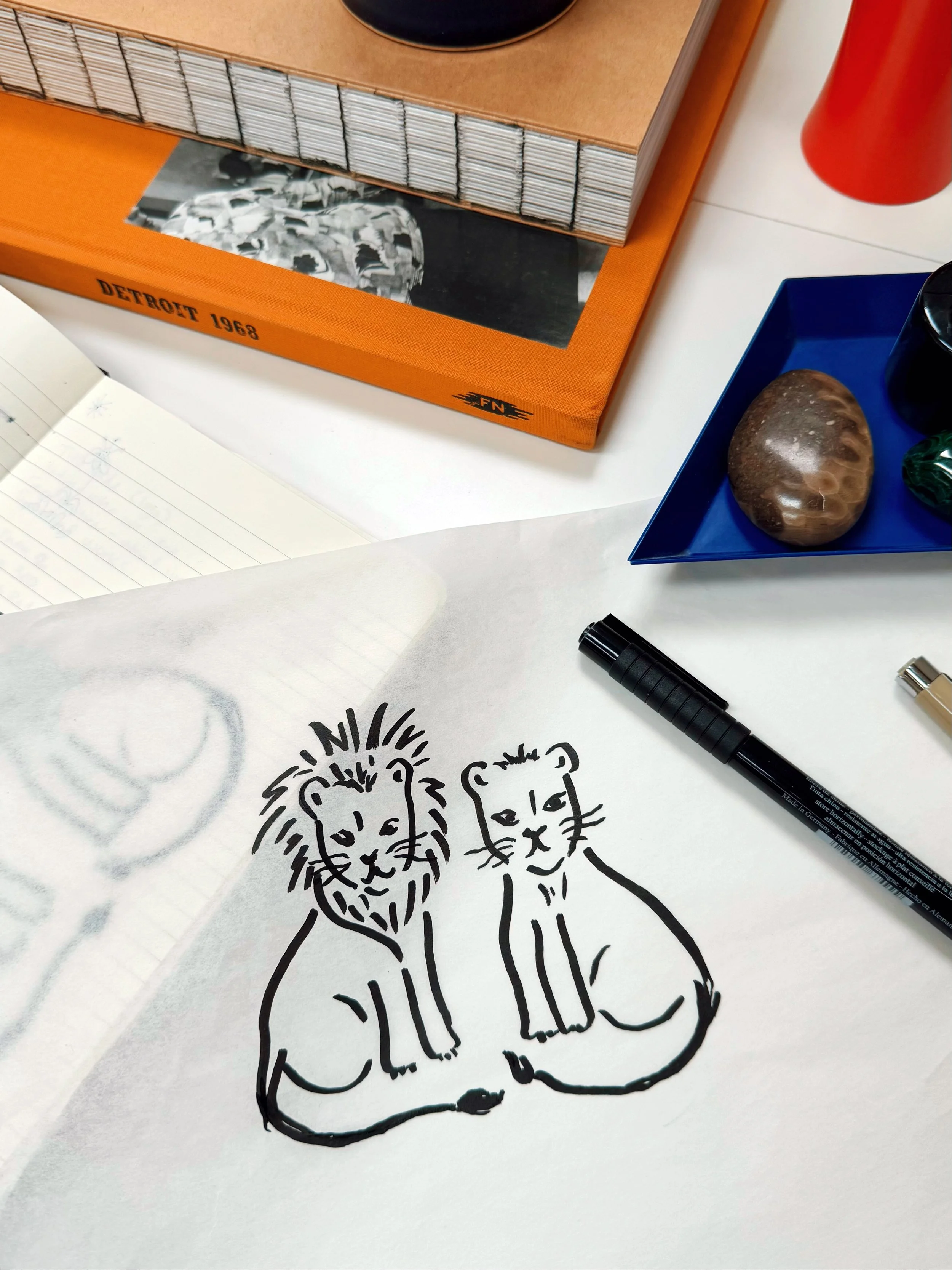 Julia and Jacob met while working on global brand teams at Converse and Sonos, where Julia refined her craft in brand design and Jacob in brand marketing. After years on both coasts, they returned to Julia’s hometown of Detroit to found Lion Lion, named in honor of their two fearless Leo children, and a reflection of their own creative duality.